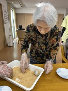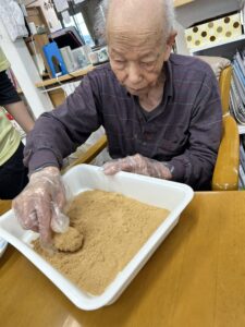 3月19日(金)、ひまわりの家では、お彼岸に合わせて「ぼたもちづくり」を行いました。